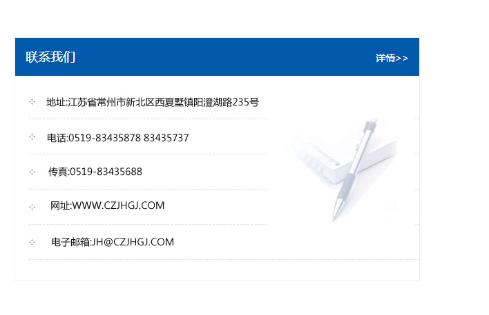 地址:常州市新北區友邦商務大廈1幢16、17層  電話:0519-85101652  傳真:0519-85112595  郵編:213022  網址:www_cz-jiayue_cn.gaogl.com  郵箱:xiajifengaa@163.com